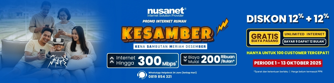 - Hanya berlaku untuk customer baru yang mendaftar dan berlangganan layanan Nusanet selama periode program berlangsung.